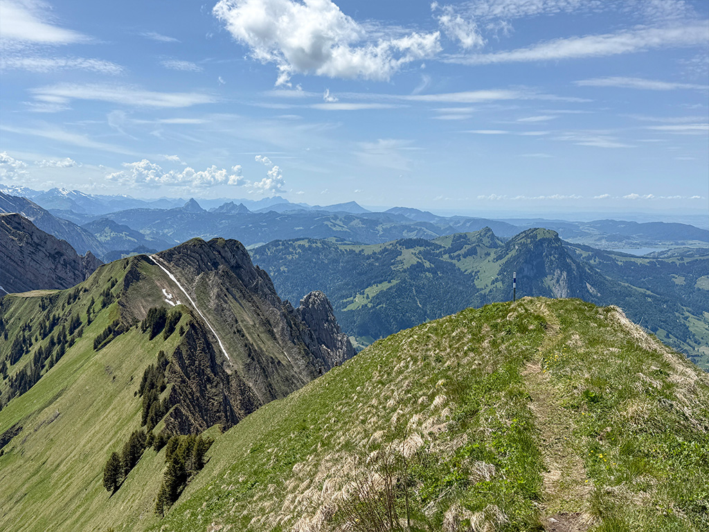 Schöne Wanderung auf dem langen Grat mit herrlicher Aussicht in einer neuen Region.